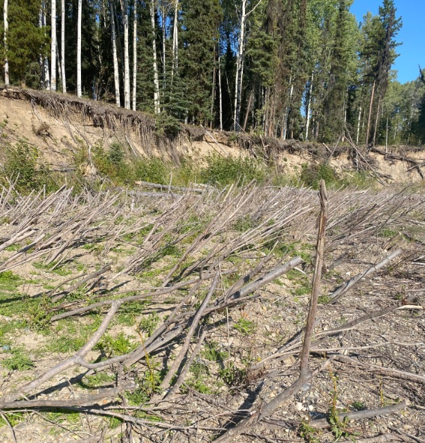In 2020 restoration work on the Chilako River continued. NEWSS worked with crews from Lheidli T'enneh to build and create erosion control structures using wood and tree growth. Willows were planted to help maintain bank structure and prevent further erosion.